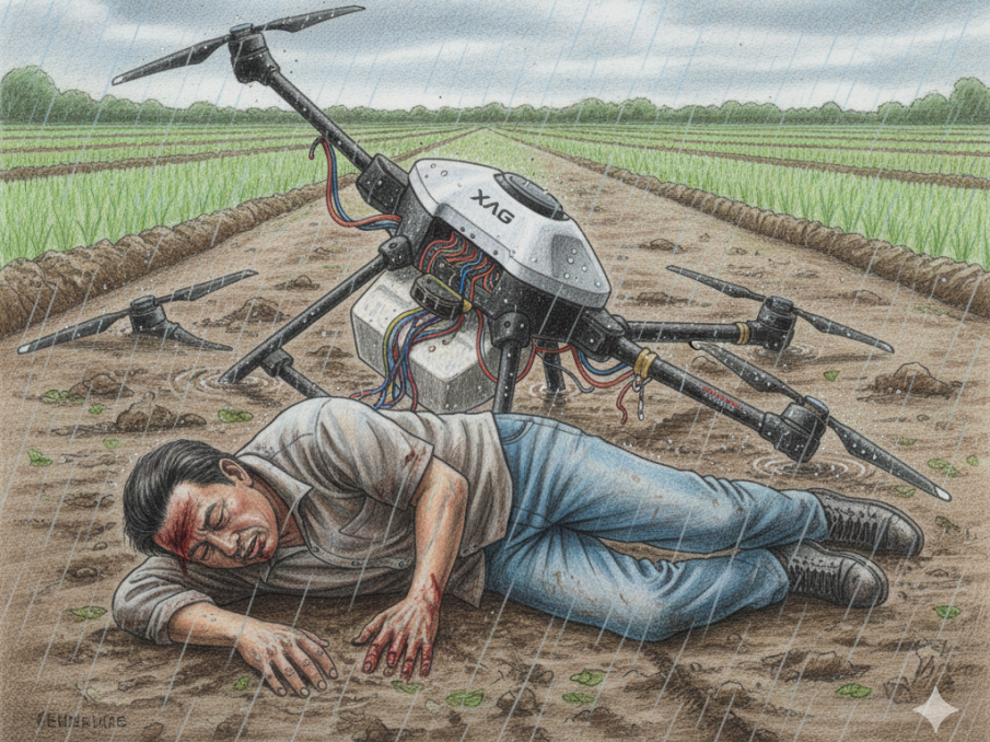 事件经过:2025年11月,黑龙江杜尔伯特,村民姜某操作无人机喷药时,机器非人为失控撞伤田间张某;