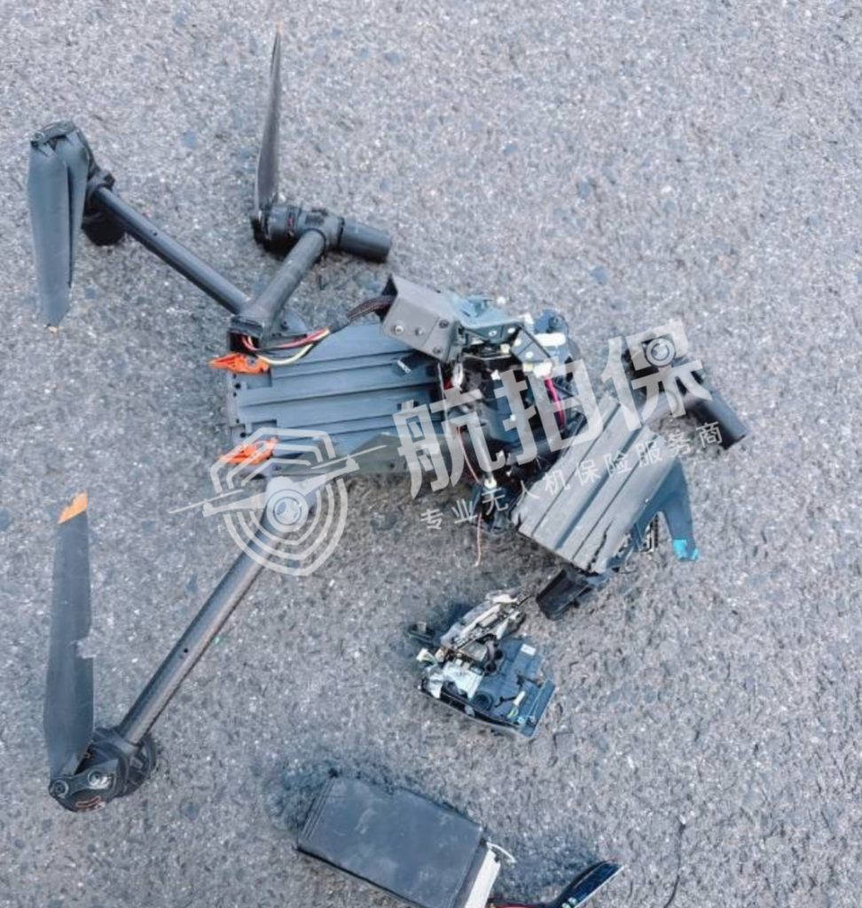 受损的大疆M30机场版无人机及炸机前拍摄画面